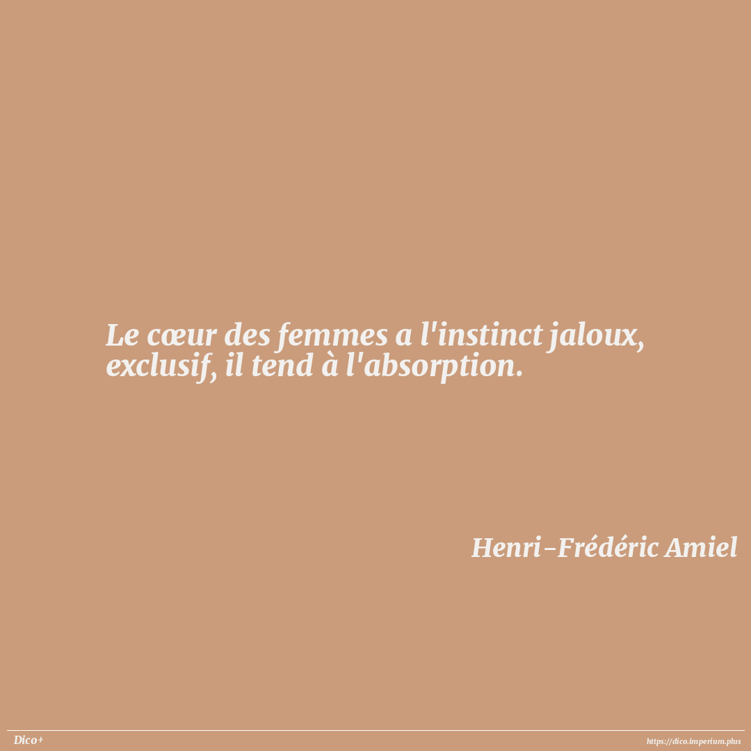 Le cœur des femmes a l'instinct jaloux, exclusif, il tend à l'absorption.