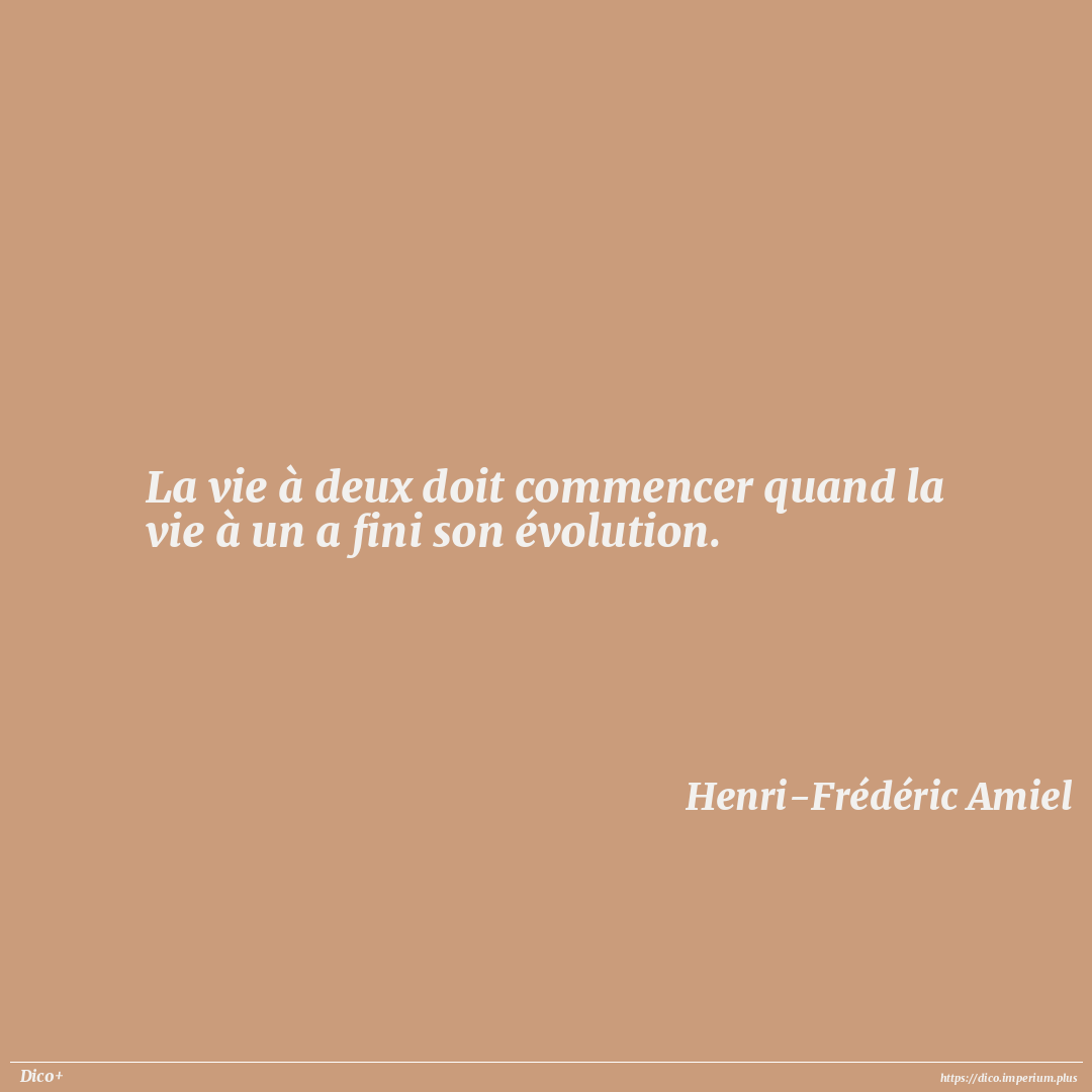 La vie à deux doit commencer quand la vie à un a fini son évolution.