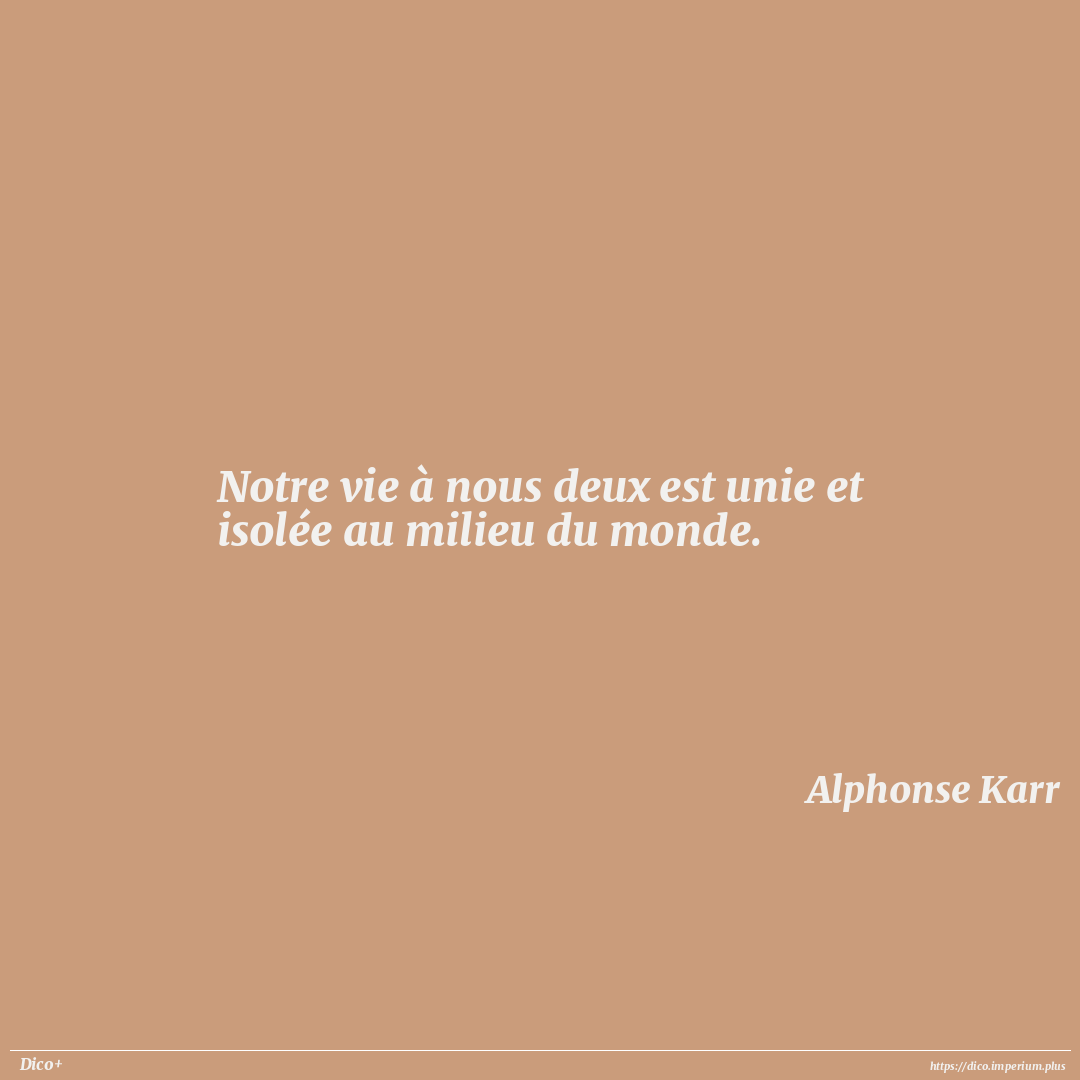 Notre vie à nous deux est unie et isolée au milieu du monde.