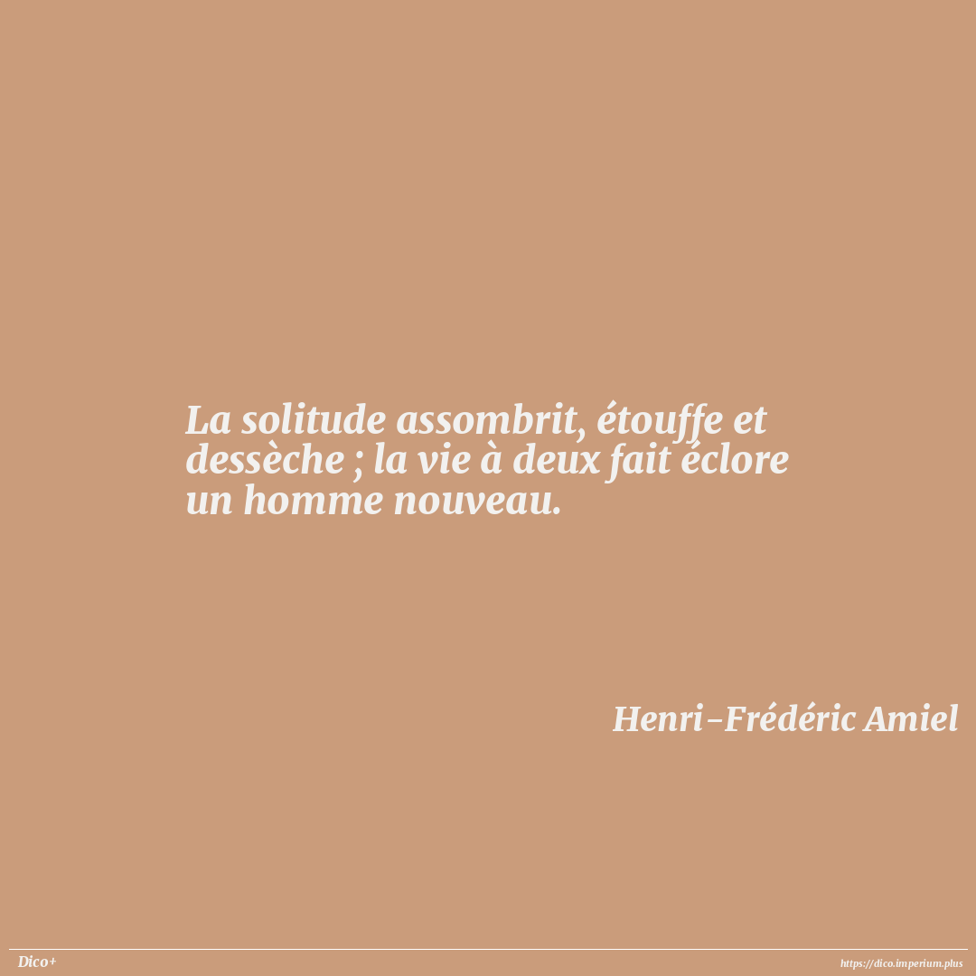 La solitude assombrit, étouffe et dessèche ; la vie à deux fait éclore un homme nouveau.