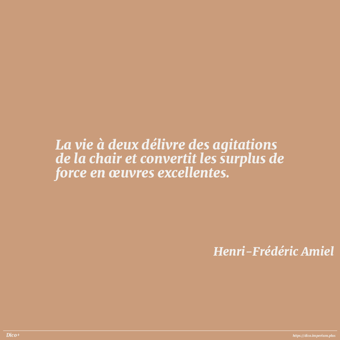 La vie à deux délivre des agitations de la chair et convertit les surplus de force en œuvres excellentes.