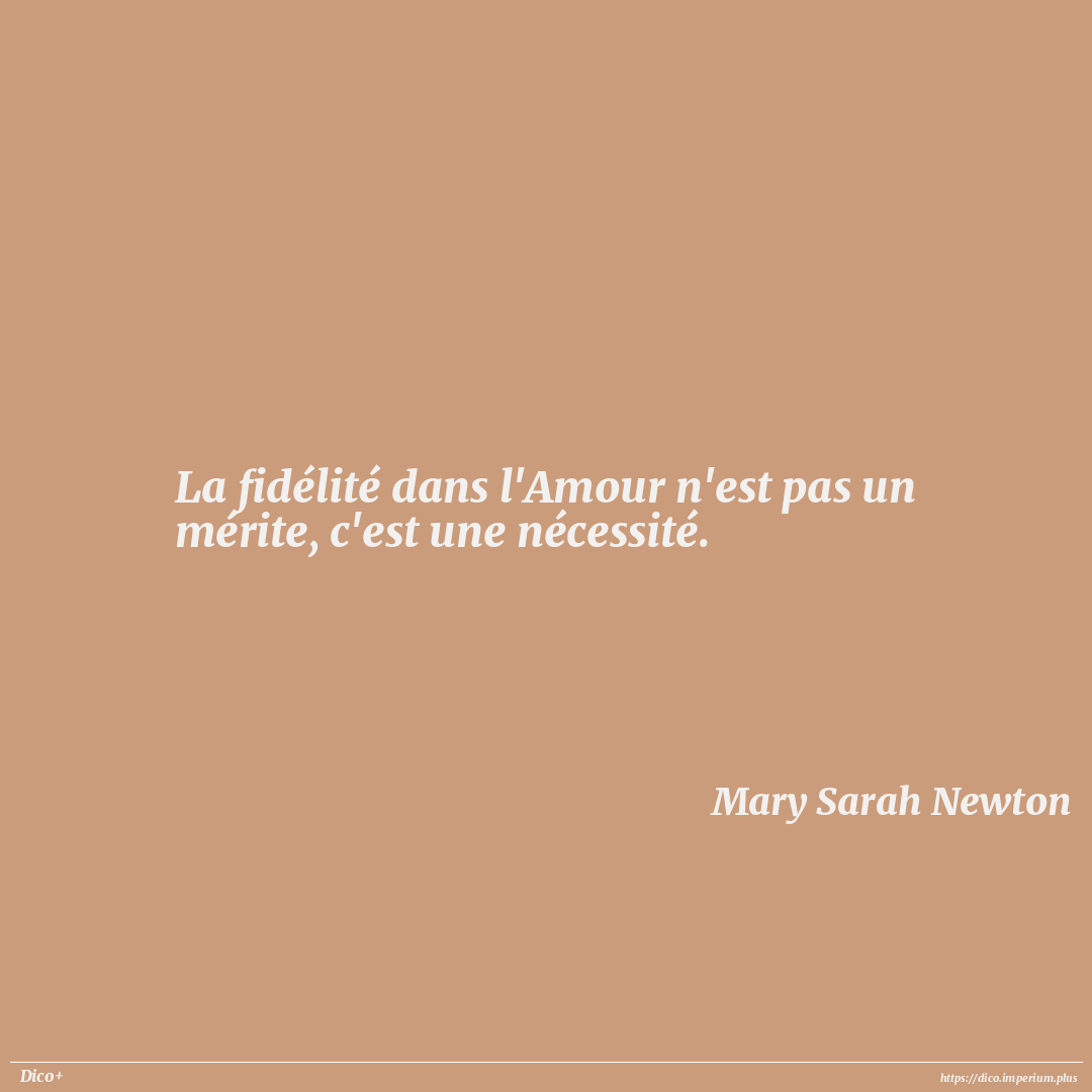La fidélité dans l'Amour n'est pas un mérite, c'est une nécessité.