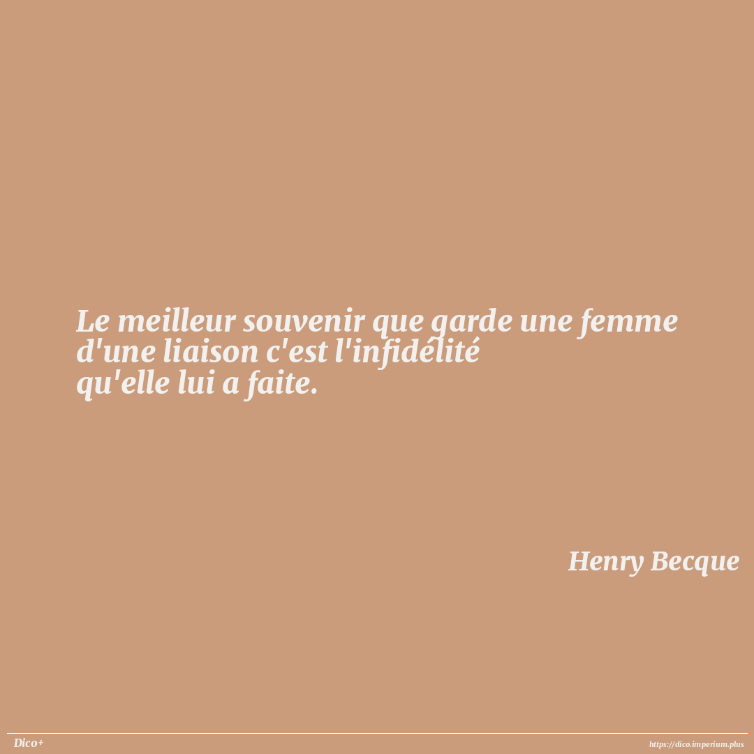 Le meilleur souvenir que garde une femme d'une liaison c'est l'infidélité qu'elle lui a faite.