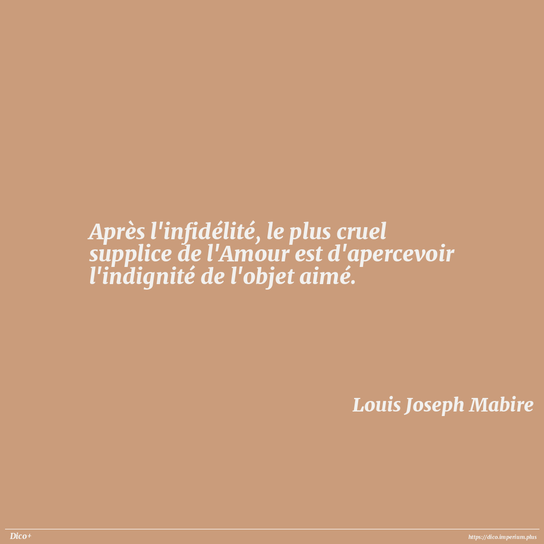 Après l'infidélité, le plus cruel supplice de l'Amour est d'apercevoir l'indignité de l'objet aimé.