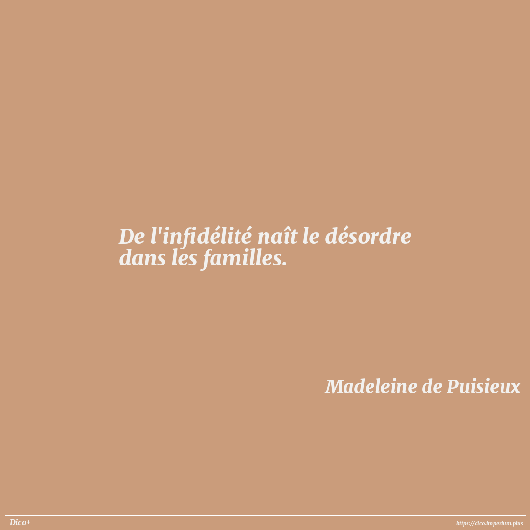 De l'infidélité naît le désordre dans les familles.