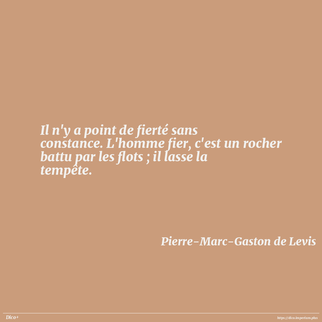 Il n'y a point de fierté sans constance. L'homme fier, c'est un rocher battu par les flots ; il lasse la tempête.