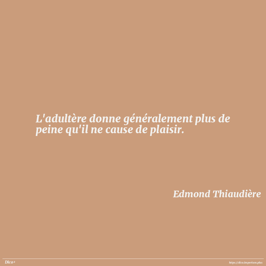 L'adultère donne généralement plus de peine qu'il ne cause de plaisir.