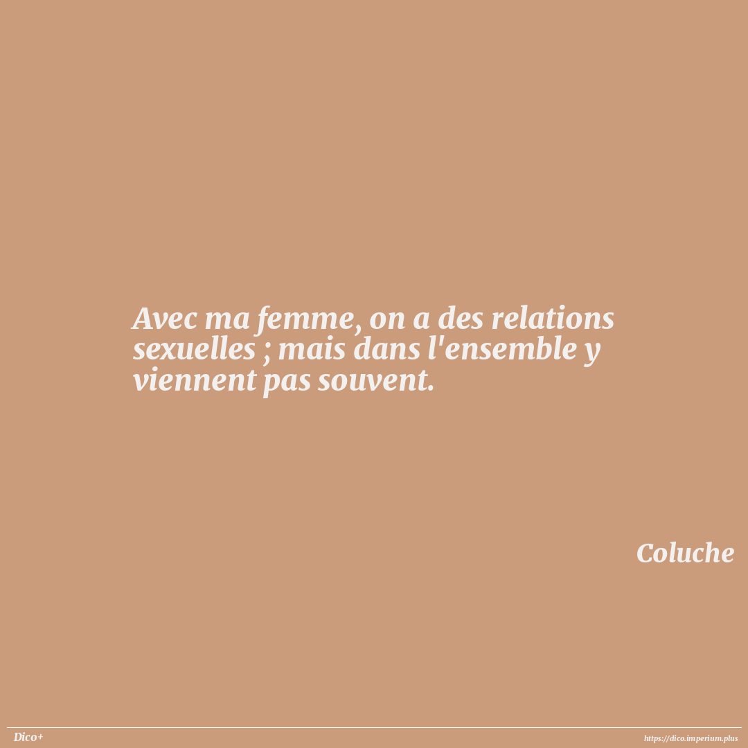 Avec ma femme, on a des relations sexuelles ; mais dans l'ensemble y viennent pas souvent.