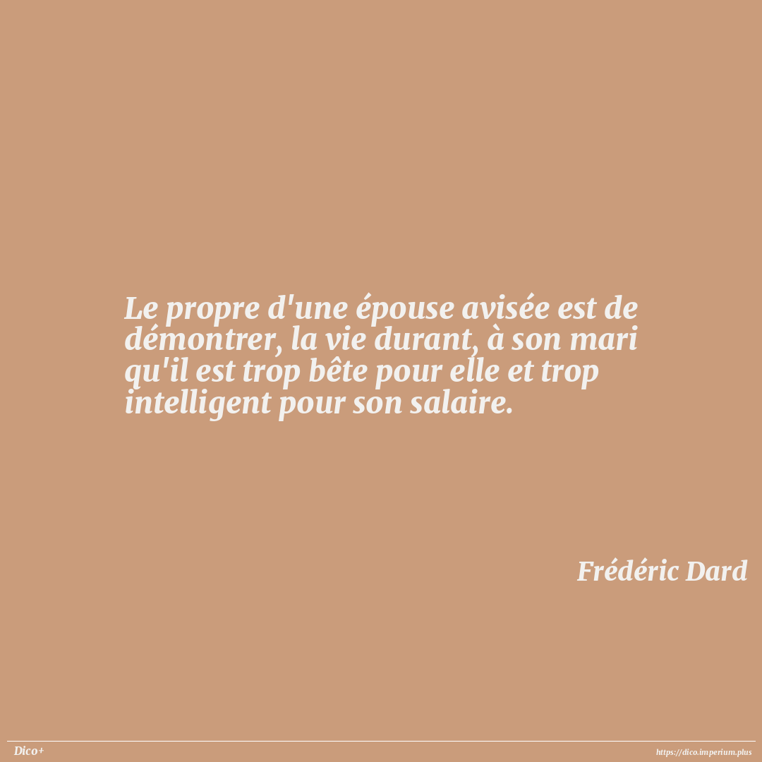 Le propre d'une épouse avisée est de démontrer, la vie durant, à son mari qu'il est trop bête pour elle et trop intelligent pour son salaire.