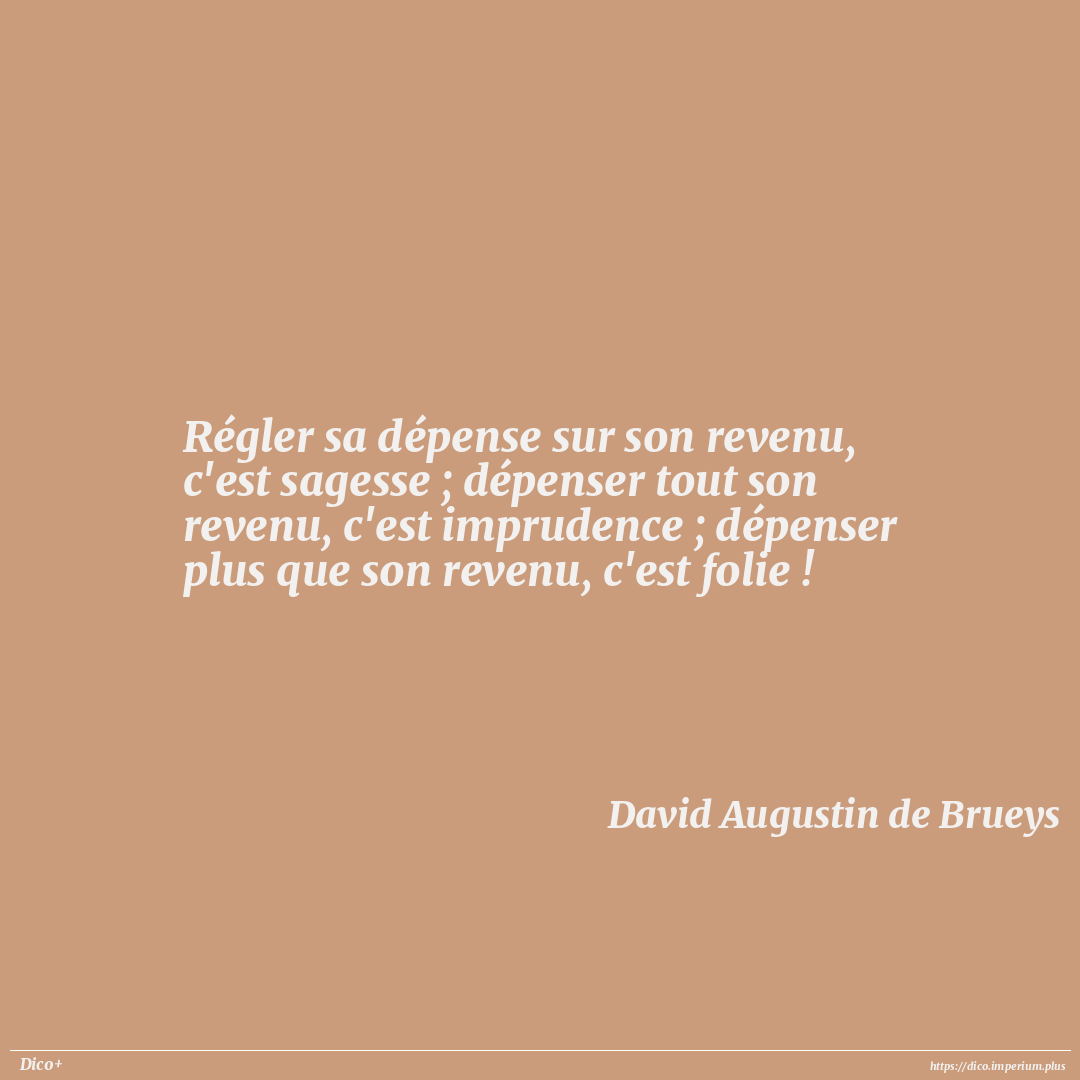 Régler sa dépense sur son revenu, c'est sagesse ; dépenser tout son revenu, c'est imprudence ; dépenser plus que son revenu, c'est folie !