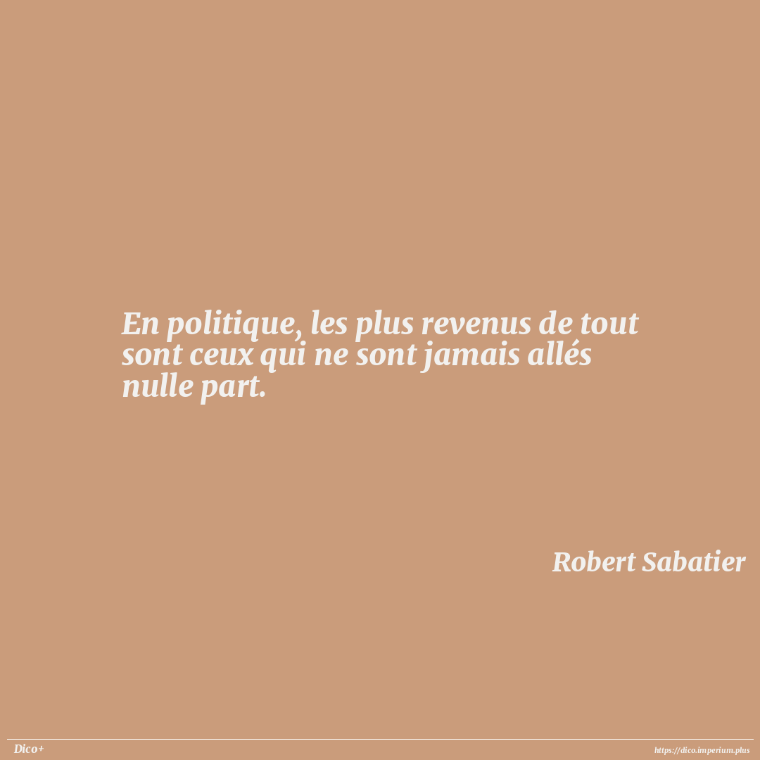 En politique, les plus revenus de tout sont ceux qui ne sont jamais allés nulle part.