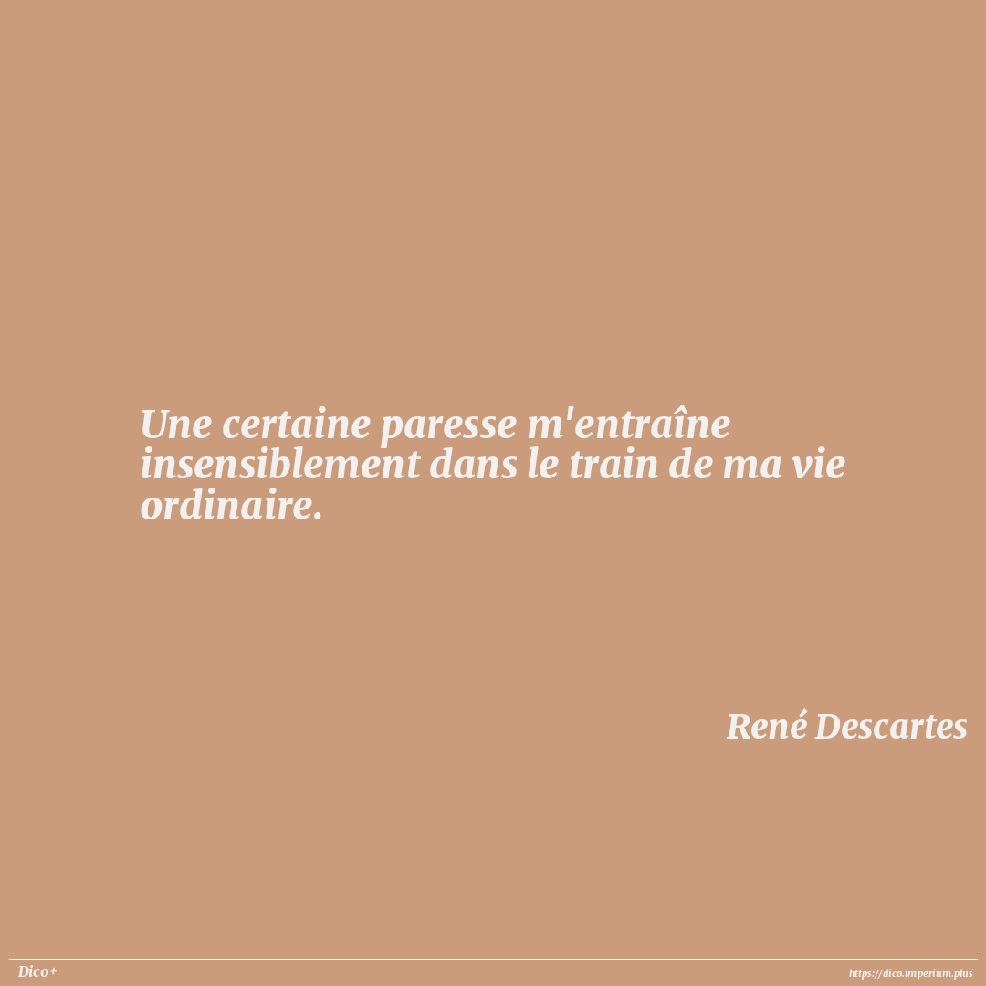 Une certaine paresse m'entraîne insensiblement dans le train de ma vie ordinaire.