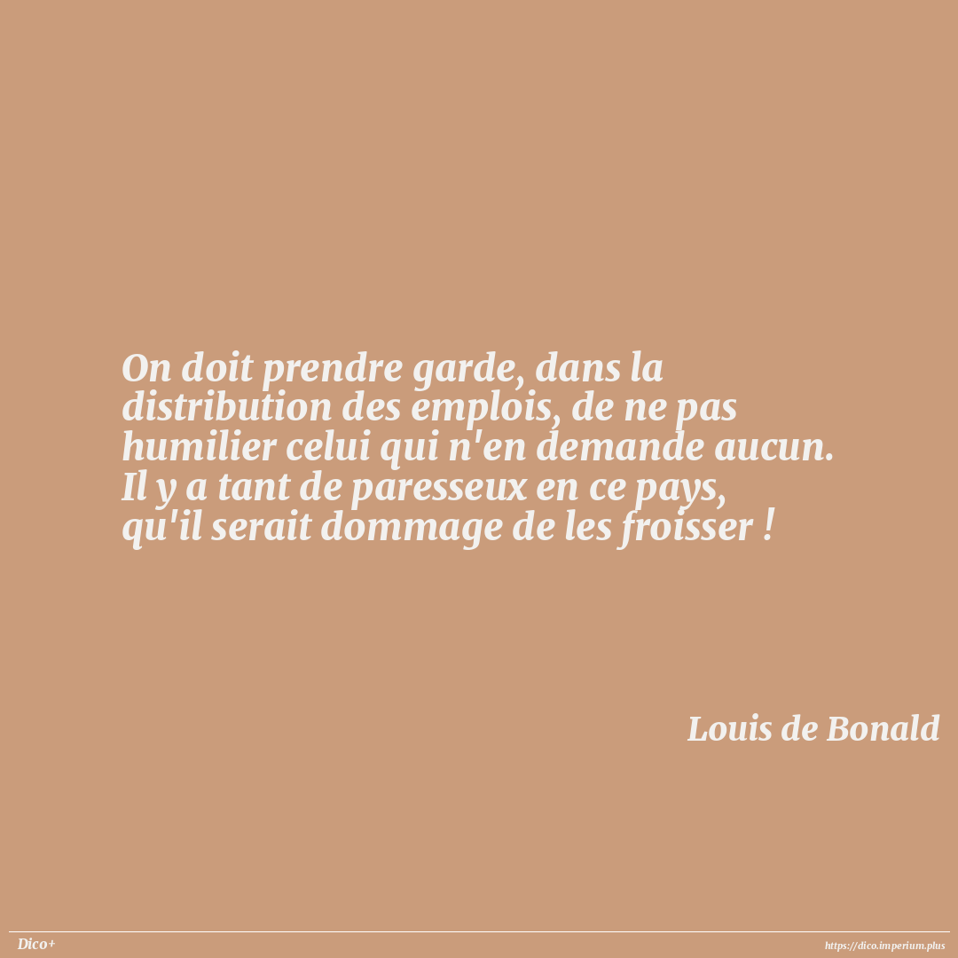 On doit prendre garde, dans la distribution des emplois, de ne pas humilier celui qui n'en demande aucun. Il y a tant de paresseux en ce pays, qu'il serait dommage de les froisser !
