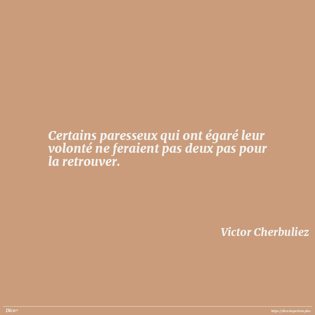 Certains paresseux qui ont égaré leur volonté ne feraient pas deux pas pour la retrouver.