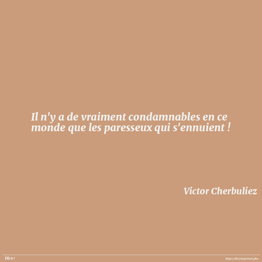 Il n'y a de vraiment condamnables en ce monde que les paresseux qui s'ennuient !
