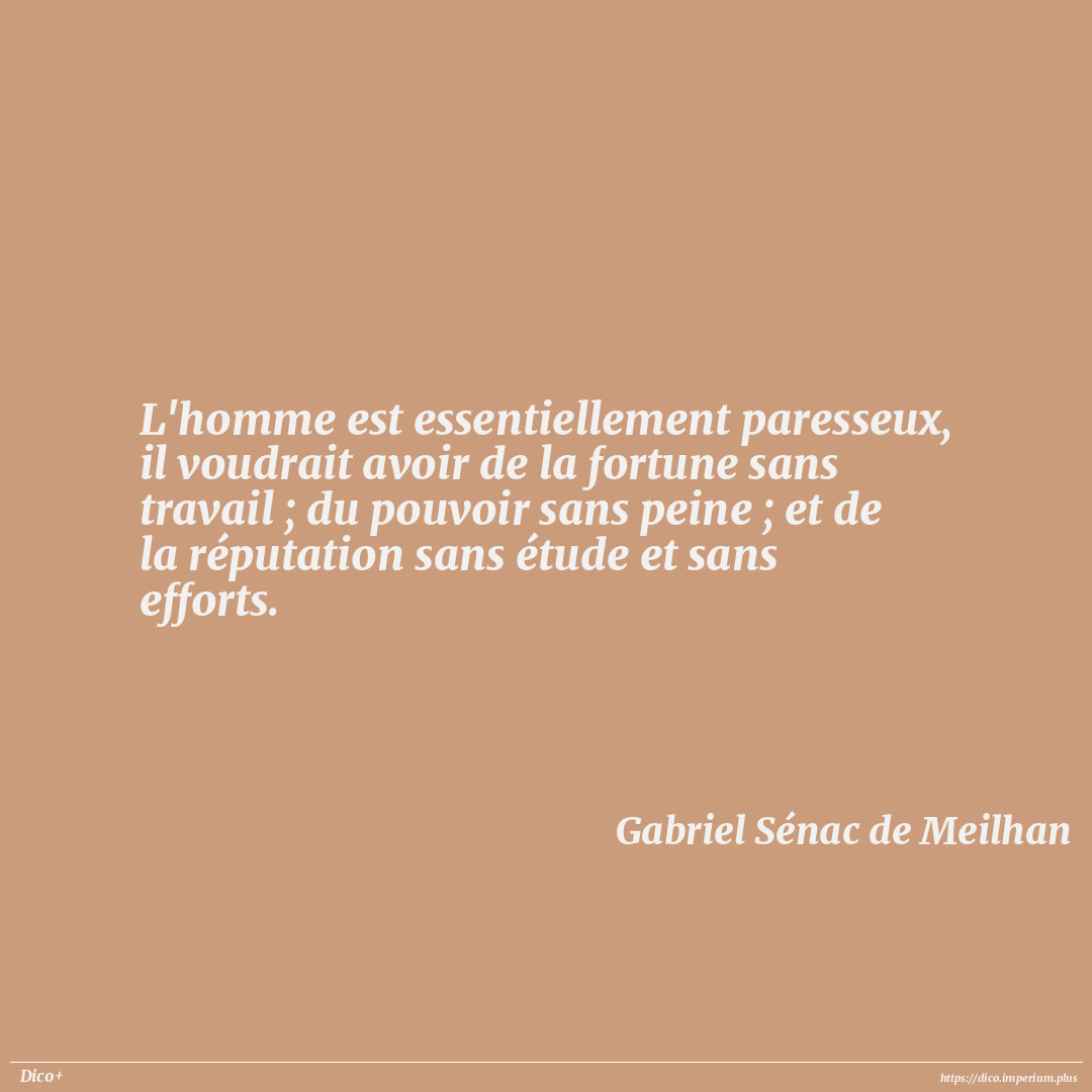 L'homme est essentiellement paresseux, il voudrait avoir de la fortune sans travail ; du pouvoir sans peine ; et de la réputation sans étude et sans efforts.
