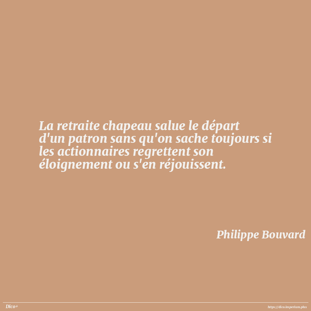 La retraite chapeau salue le départ d'un patron sans qu'on sache toujours si les actionnaires regrettent son éloignement ou s'en réjouissent.