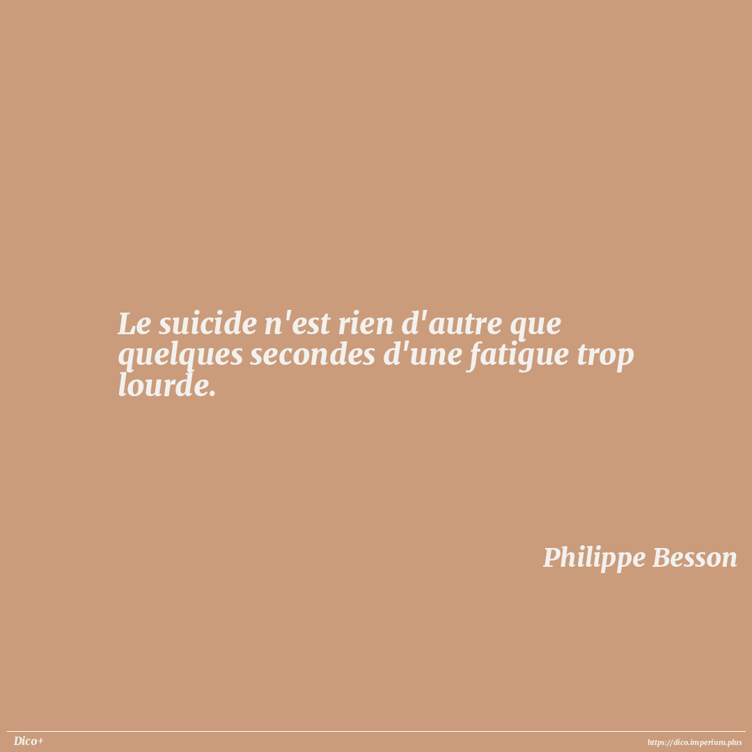 Le suicide n'est rien d'autre que quelques secondes d'une fatigue trop lourde.