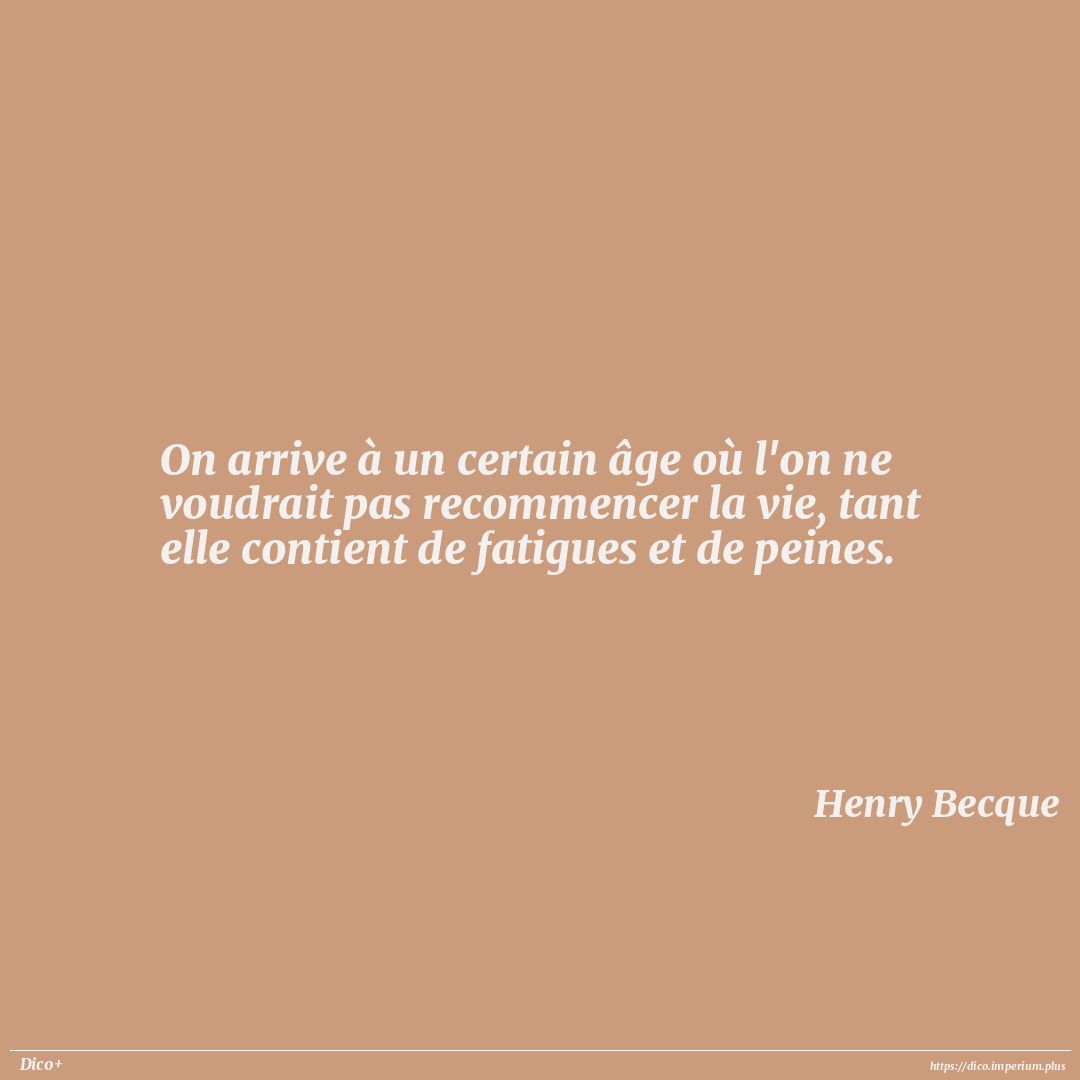 On arrive à un certain âge où l'on ne voudrait pas recommencer la vie, tant elle contient de fatigues et de peines.