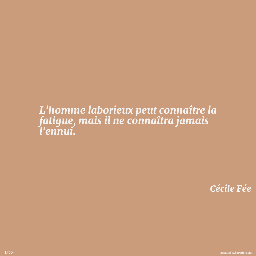 L'homme laborieux peut connaître la fatigue, mais il ne connaîtra jamais l'ennui.