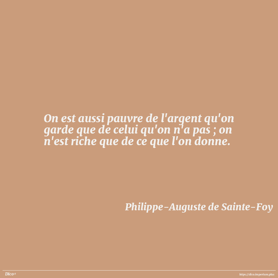 On est aussi pauvre de l'argent qu'on garde que de celui qu'on n'a pas ; on n'est riche que de ce que l'on donne.