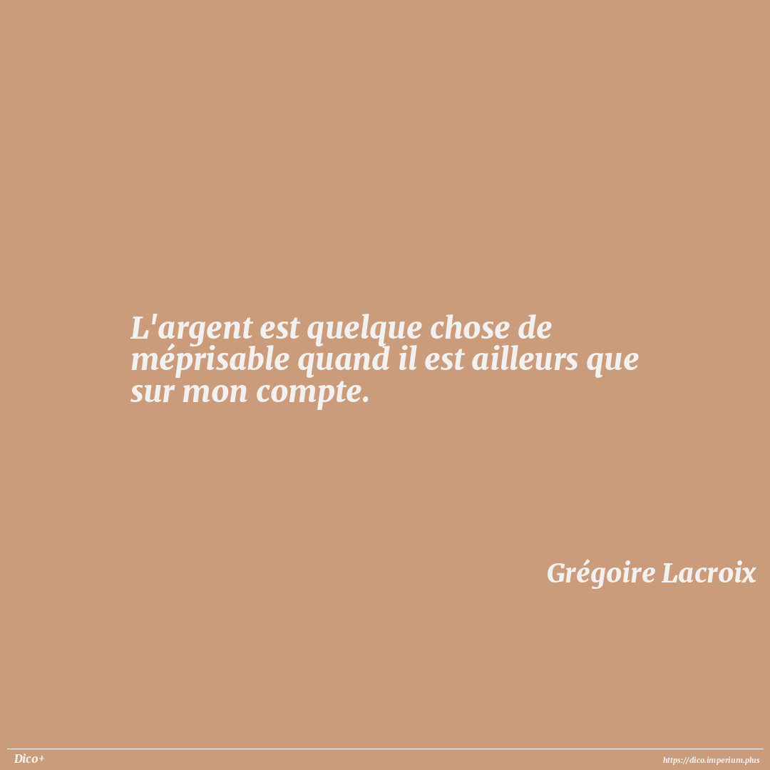 L'argent est quelque chose de méprisable quand il est ailleurs que sur mon compte.