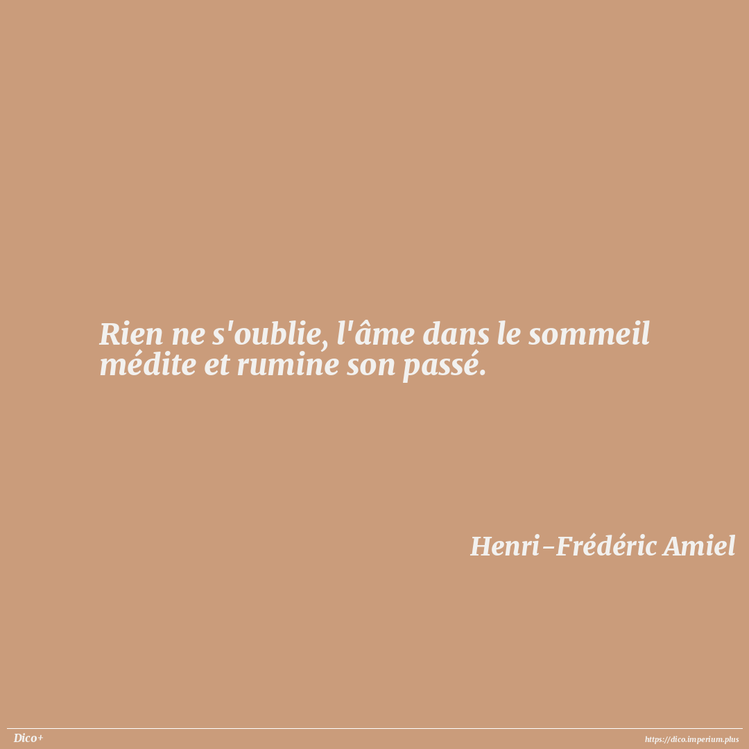 Rien ne s'oublie, l'âme dans le sommeil médite et rumine son passé.