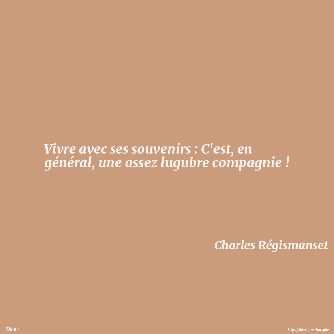 Vivre avec ses souvenirs : C'est, en général, une assez lugubre compagnie !