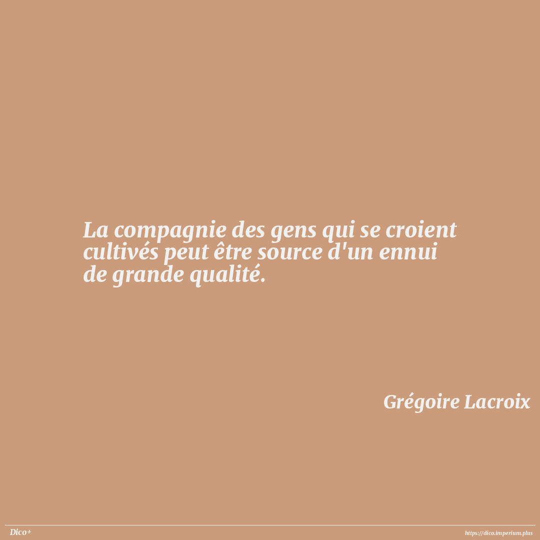 La compagnie des gens qui se croient cultivés peut être source d'un ennui de grande qualité.
