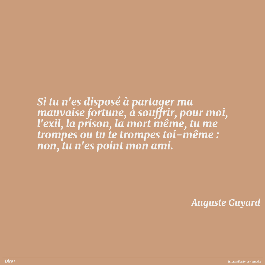Si tu n'es disposé à partager ma mauvaise fortune, à souffrir, pour moi, l'exil, la prison, la mort même, tu me trompes ou tu te trompes toi-même : non, tu n'es point mon ami.