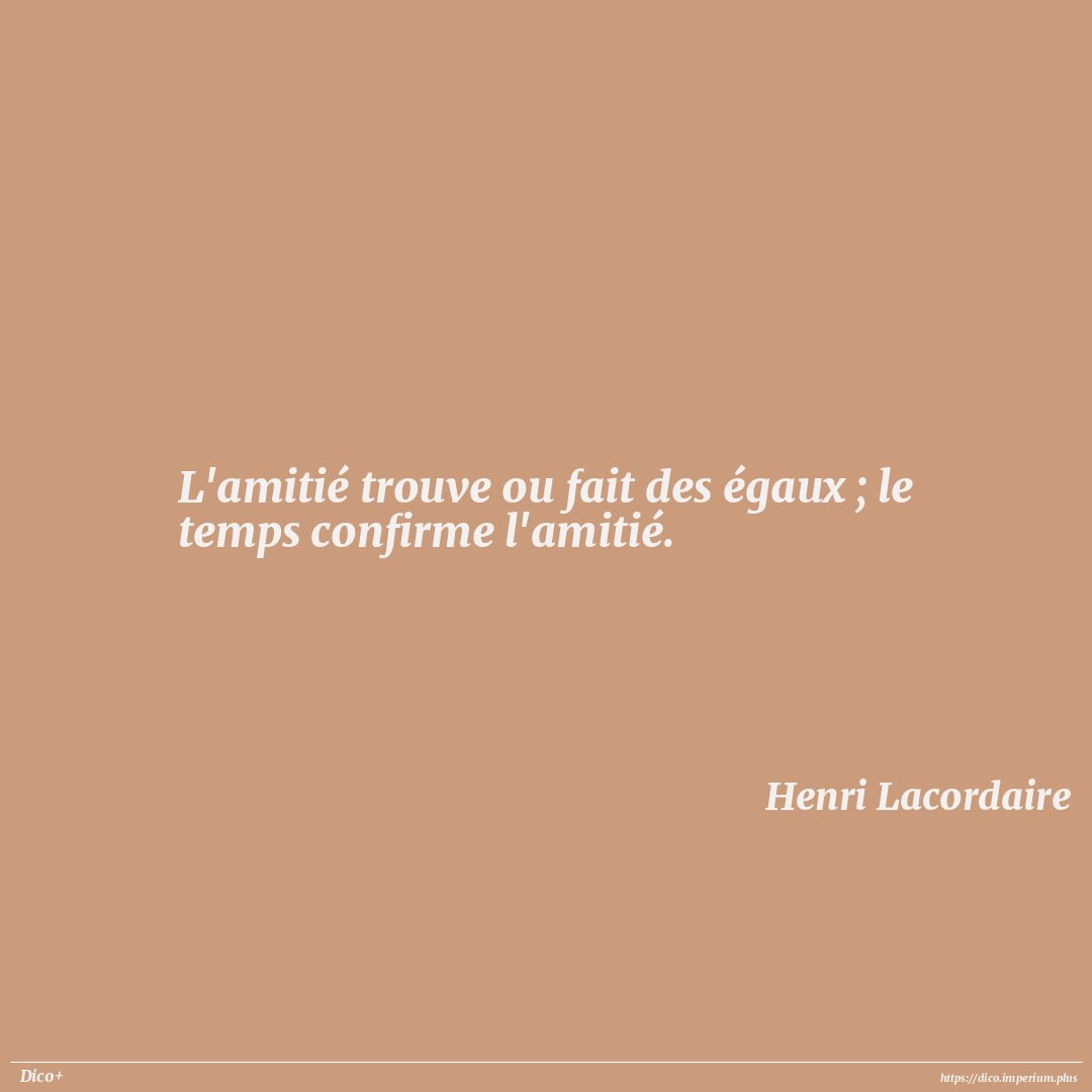 L'amitié trouve ou fait des égaux ; le temps confirme l'amitié.