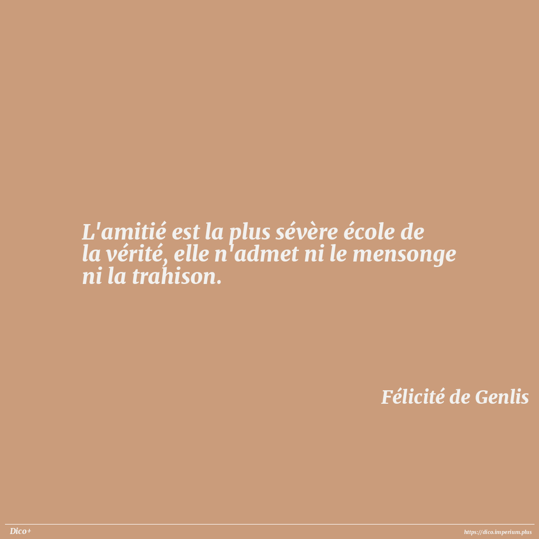 L'amitié est la plus sévère école de la vérité, elle n'admet ni le mensonge ni la trahison.