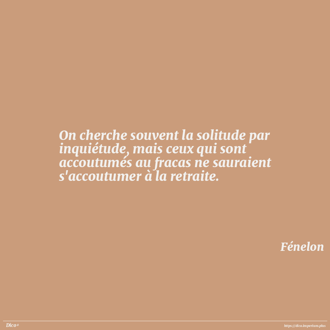 On cherche souvent la solitude par inquiétude, mais ceux qui sont accoutumés au fracas ne sauraient s'accoutumer à la retraite.
