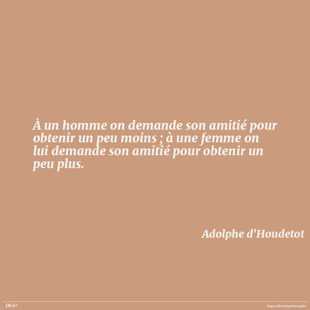 À un homme on demande son amitié pour obtenir un peu moins ; à une femme on lui demande son amitié pour obtenir un peu plus.