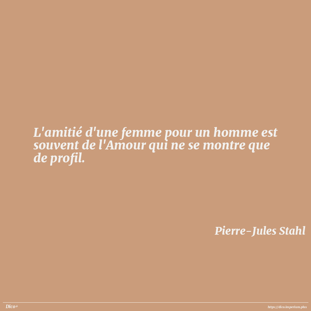 L'amitié d'une femme pour un homme est souvent de l'Amour qui ne se montre que de profil.
