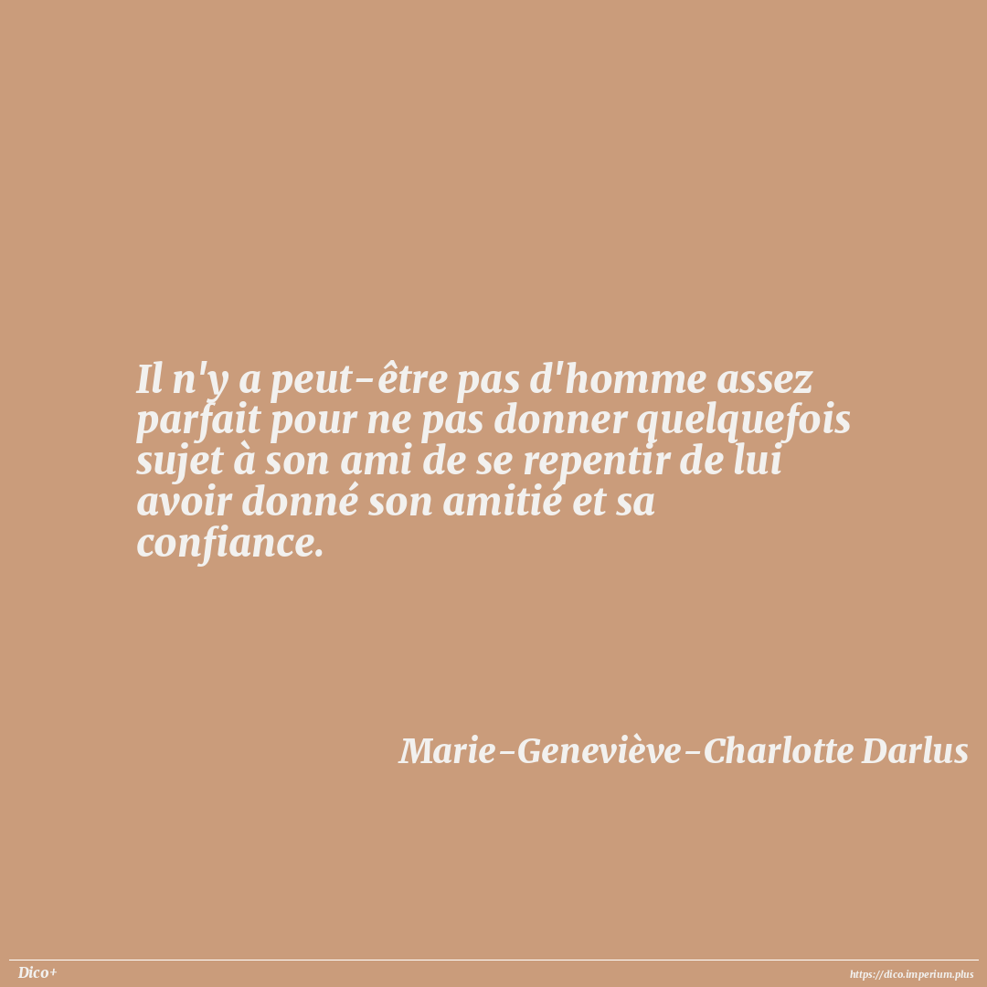 Il n'y a peut-être pas d'homme assez parfait pour ne pas donner quelquefois sujet à son ami de se repentir de lui avoir donné son amitié et sa confiance.