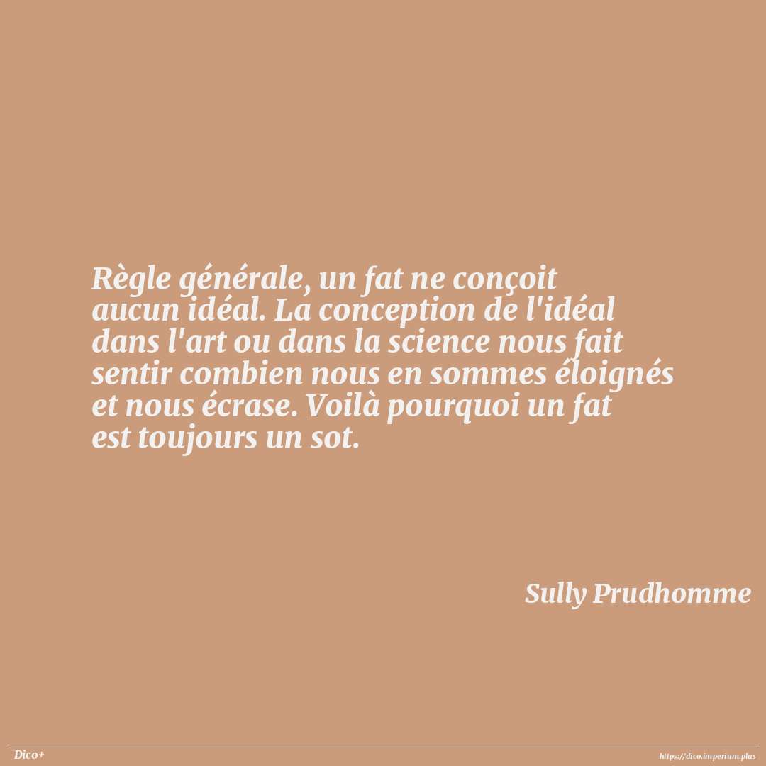 Règle générale, un fat ne conçoit aucun idéal. La conception de l'idéal dans l'art ou dans la science nous fait sentir combien nous en sommes éloignés et nous écrase. Voilà pourquoi un fat est toujours un sot.
