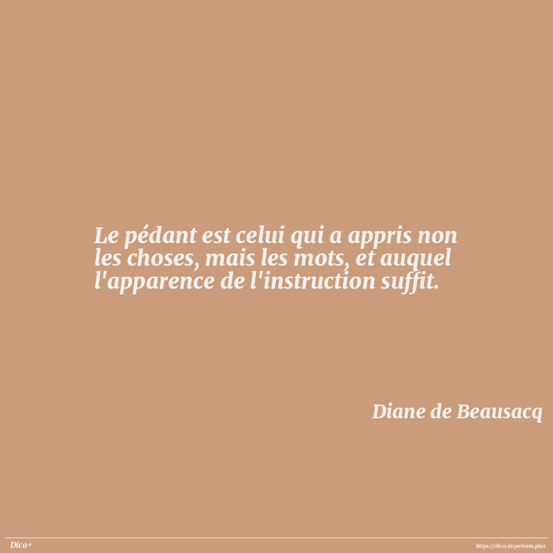 Le pédant est celui qui a appris non les choses, mais les mots, et auquel l'apparence de l'instruction suffit.