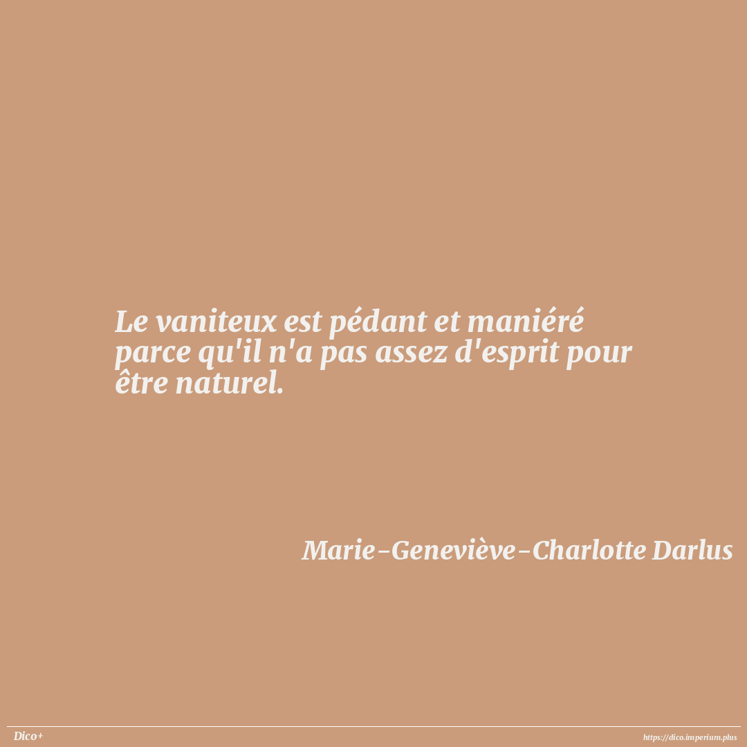Le vaniteux est pédant et maniéré parce qu'il n'a pas assez d'esprit pour être naturel.