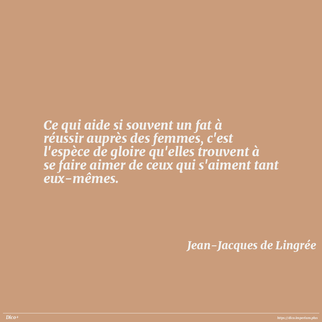 Ce qui aide si souvent un fat à réussir auprès des femmes, c'est l'espèce de gloire qu'elles trouvent à se faire aimer de ceux qui s'aiment tant eux-mêmes.
