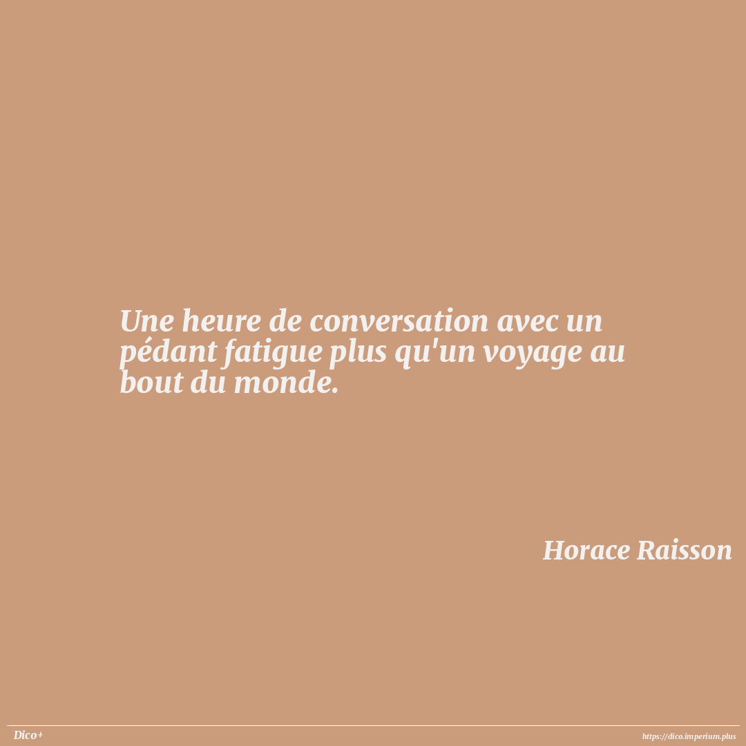 Une heure de conversation avec un pédant fatigue plus qu'un voyage au bout du monde.