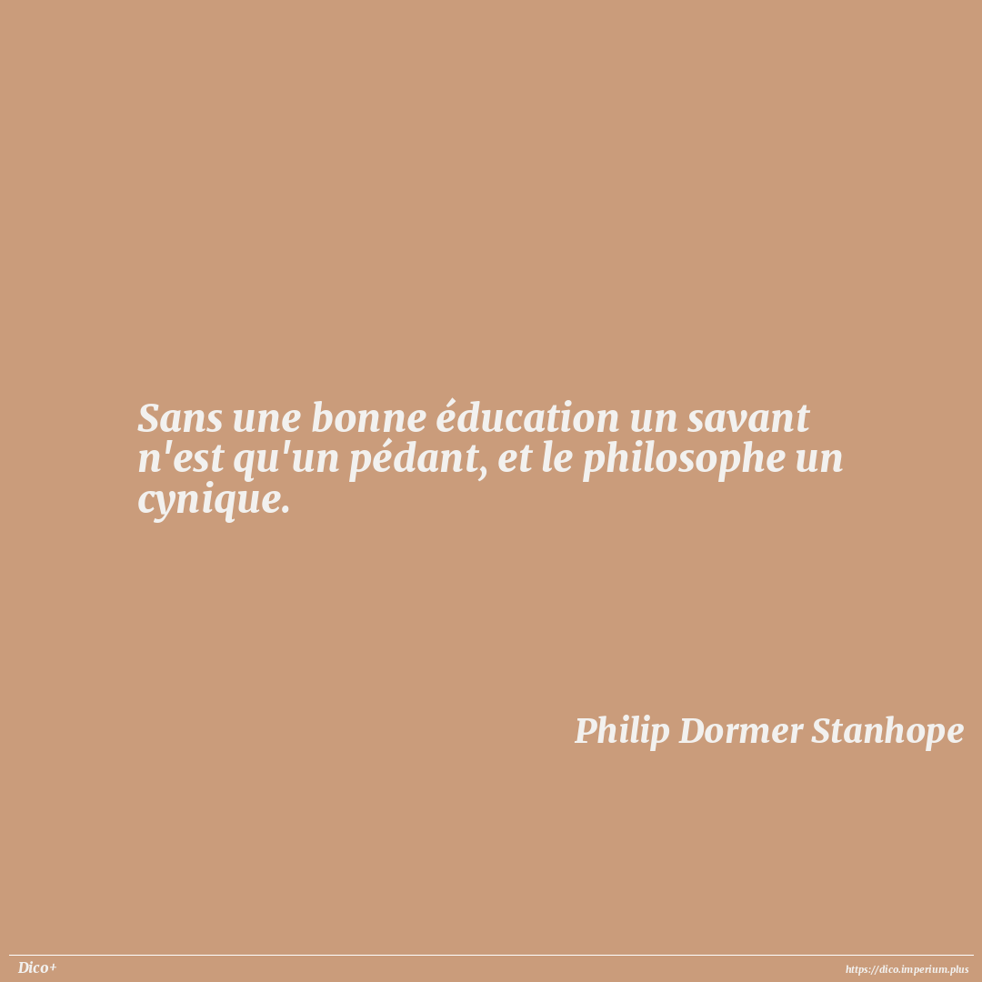 Sans une bonne éducation un savant n'est qu'un pédant, et le philosophe un cynique.
