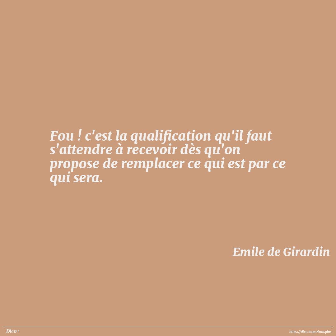 Fou ! c'est la qualification qu'il faut s'attendre à recevoir dès qu'on propose de remplacer ce qui est par ce qui sera.