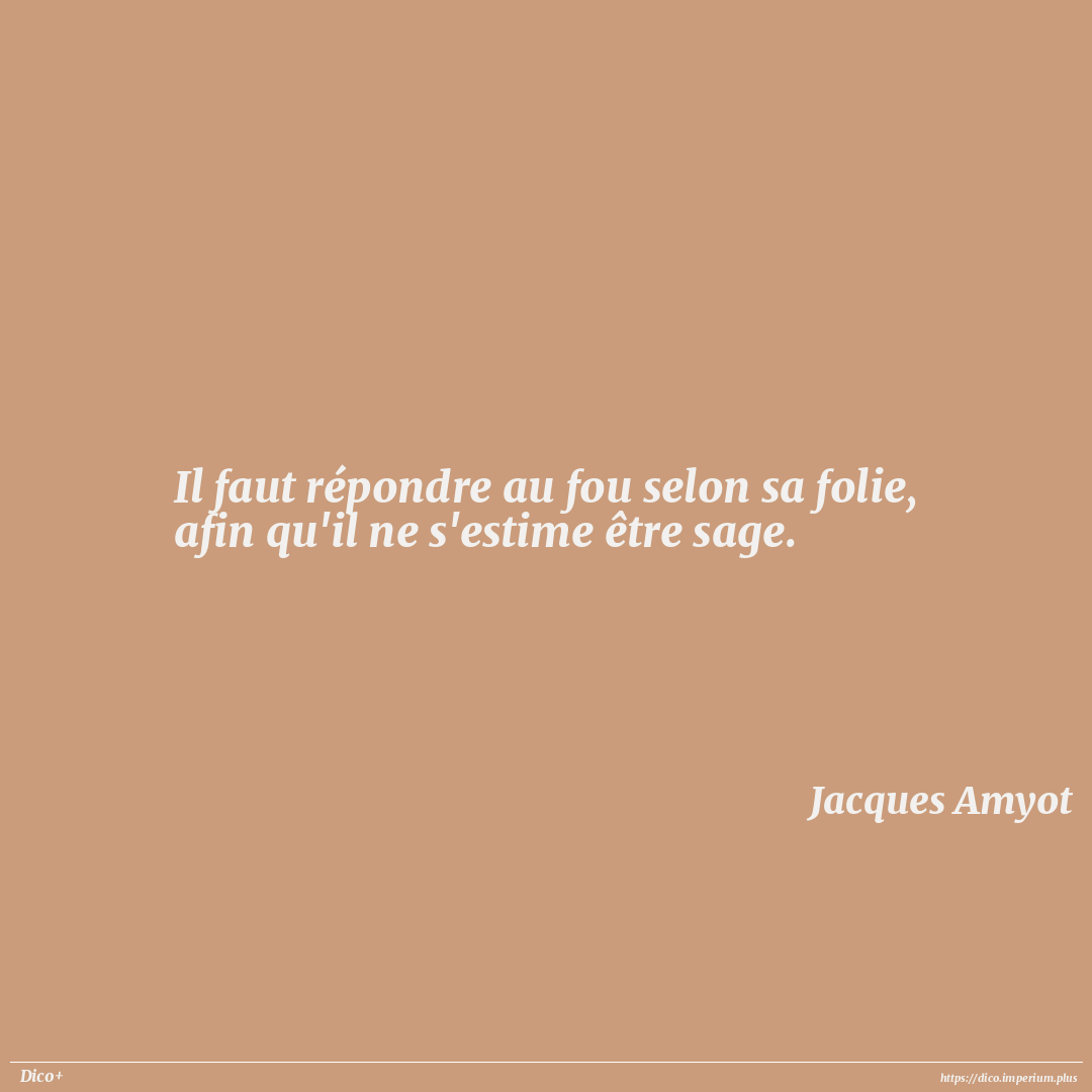 Il faut répondre au fou selon sa folie, afin qu'il ne s'estime être sage.