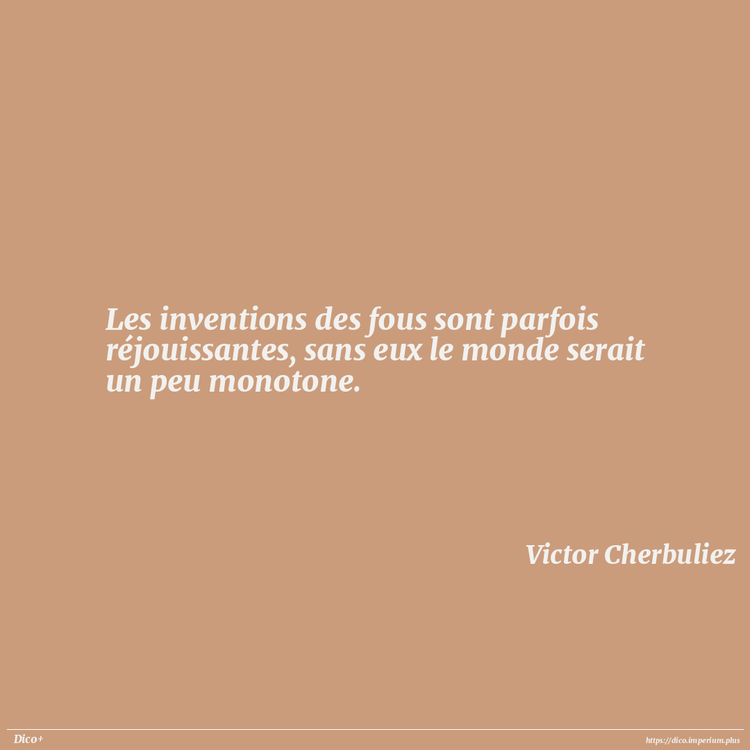 Les inventions des fous sont parfois réjouissantes, sans eux le monde serait un peu monotone.