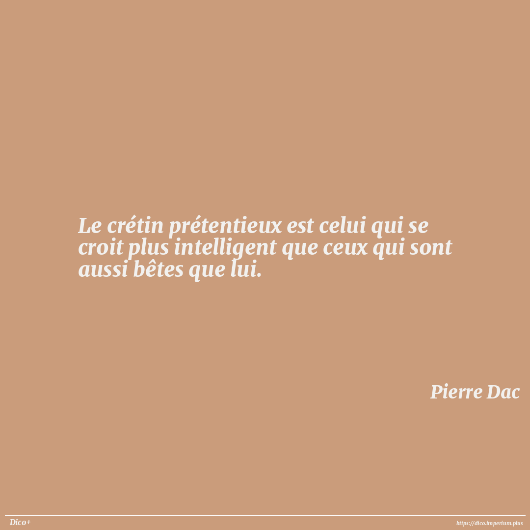 Le crétin prétentieux est celui qui se croit plus intelligent que ceux qui sont aussi bêtes que lui.