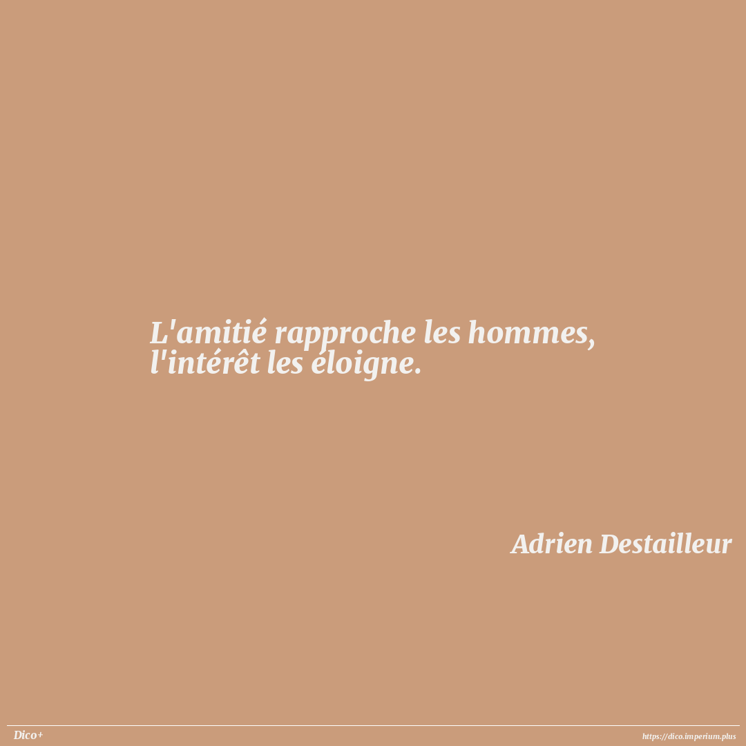 L'amitié rapproche les hommes, l'intérêt les éloigne.
