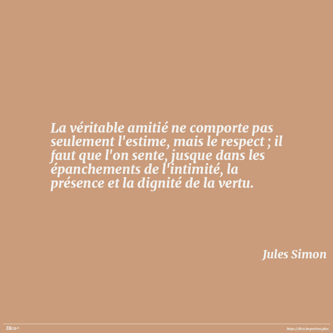 La véritable amitié ne comporte pas seulement l'estime, mais le respect ; il faut que l'on sente, jusque dans les épanchements de l'intimité, la présence et la dignité de la vertu.