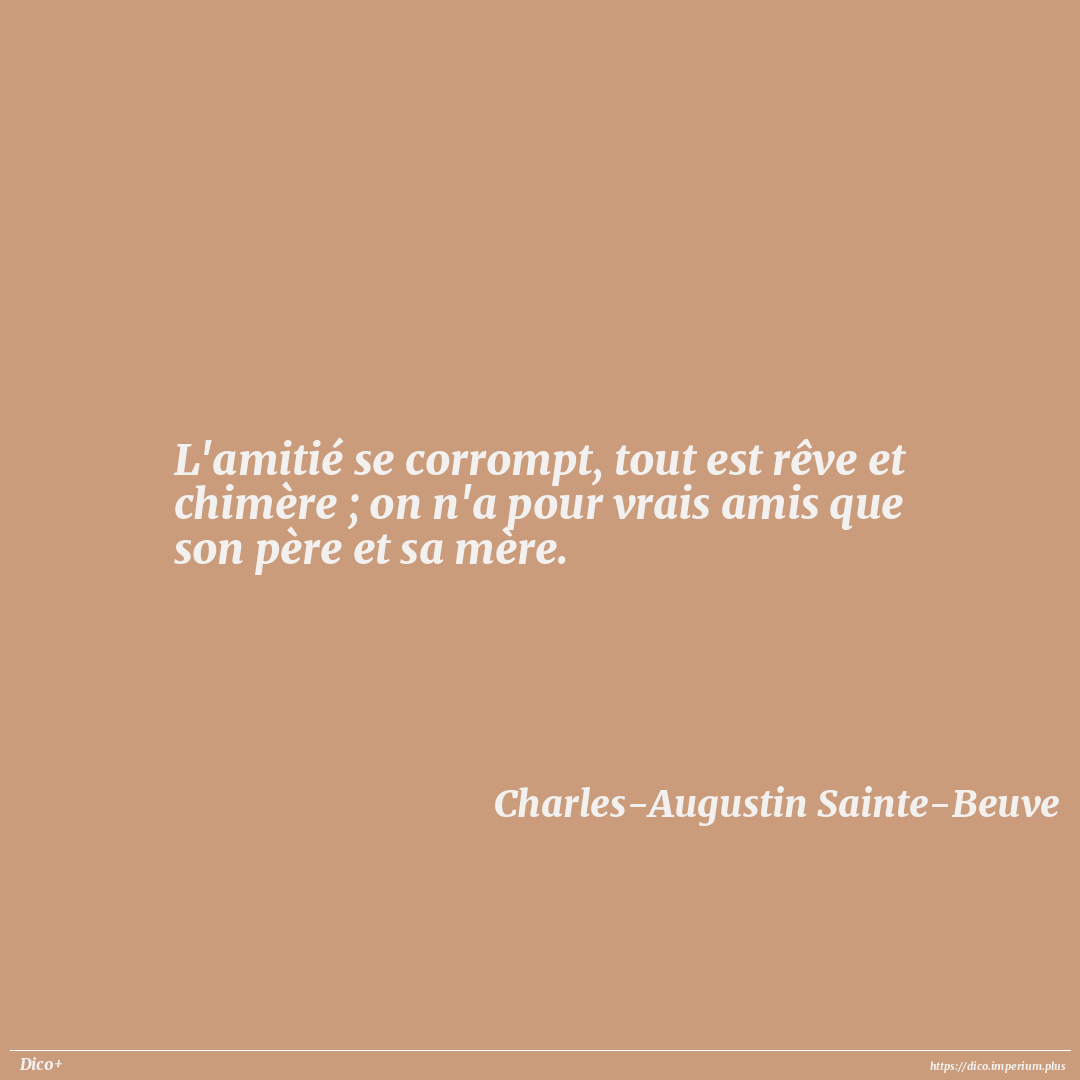 L'amitié se corrompt, tout est rêve et chimère ; on n'a pour vrais amis que son père et sa mère.