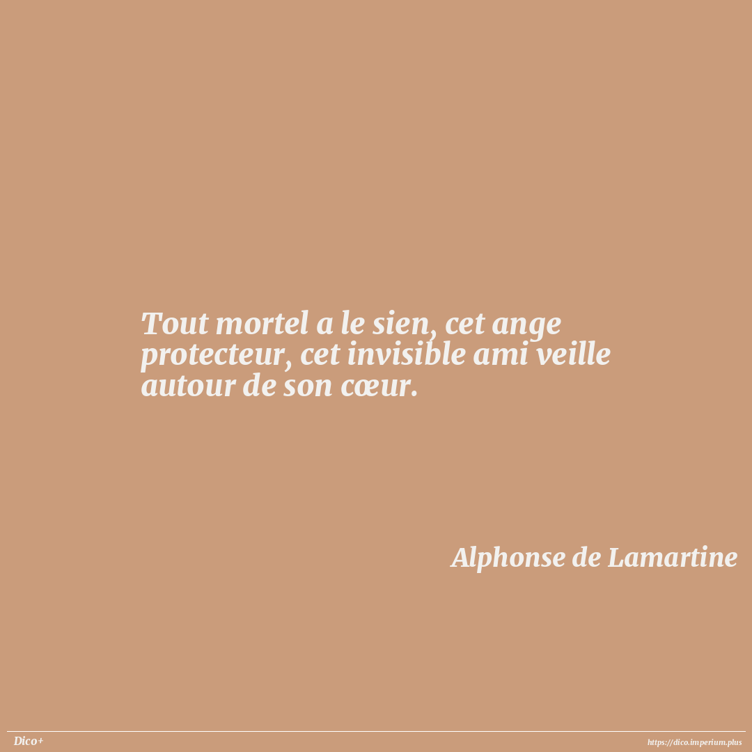 Tout mortel a le sien, cet ange protecteur, cet invisible ami veille autour de son cœur.